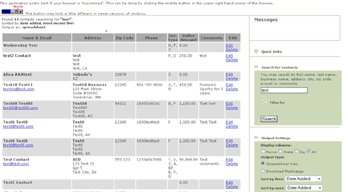 This is the primary control screen for the database. The control panels at right expand and contract for ease of viewing. Searching, sorting, et cetera can be accomplished without a page reload, as in a desktop application.